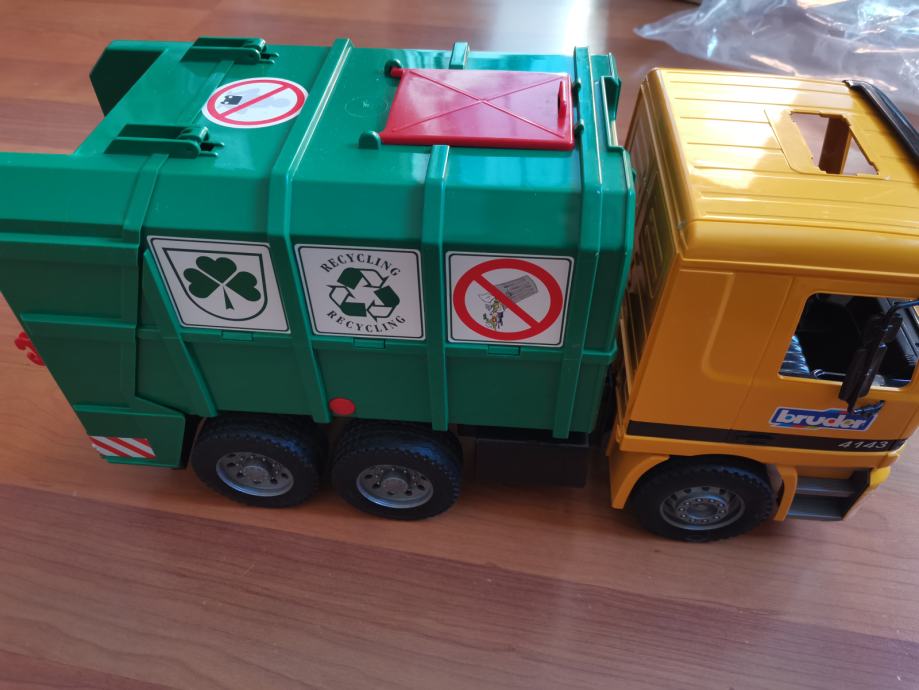 Prodamo odlično ohranjeno smetarsko vozilo znamke MAN proizvajalca Bruder z dvemi koši za smeti ter dvigom in spustom. Vozilo je bilo zelo malo ''voženo'' predvsem je bolj polno prahu. Dolžina cca 50 cm.