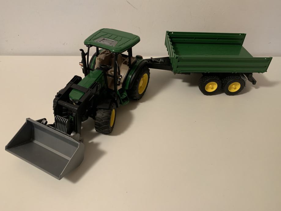 - mali traktor John Deer z nakladalno kiblo in prikolico (kot novo) cena 20€,