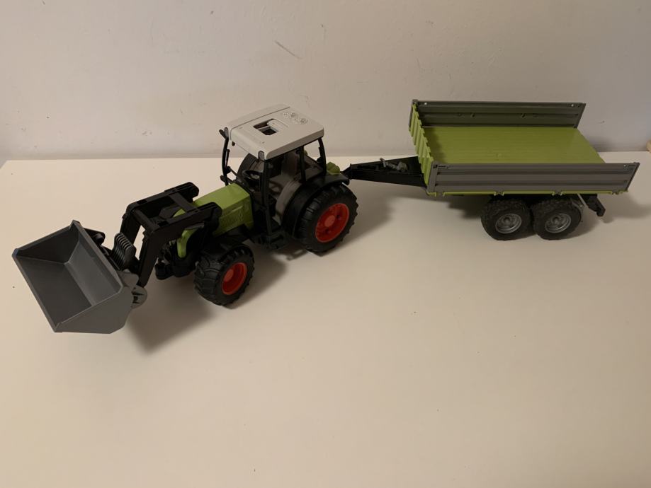 - mali traktor Claas z nakladalno kiblo in prikolico (kot novo) cena 20€,