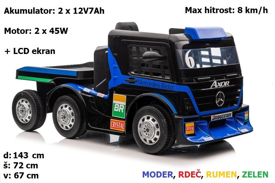 Otroški Mercedes Axor XMX622B + prikolica + LCD ekran + Bluetooth.