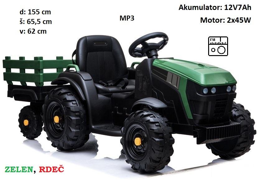 Otroški traktor na akumulator 12V BDM0925 (zelen ali rdeč) EVA gume