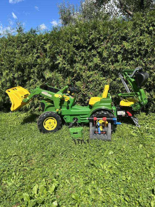 prodam pedalni traktor za otroke John Deere z veliko dodatne opreme. Traktor je opremljen z nakladalnikom rollyTrac, ki ga je zelo enostavno pritrditi in prav tako enostavno odstraniti. Traktorski sedež je nastavljiv, zato je traktor primeren za več let. Traktor ima verižni pogon na pedala, sam po sebi pa je lahko obvladljiv. Zraven traktorja dodam naslednje dodatke: