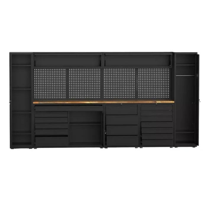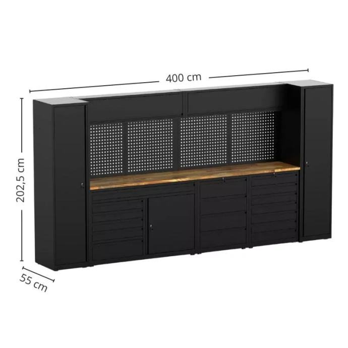 S številnimi predali, predelki in perforiranimi ploščami sistem ponuja veliko prostora za shranjevanje orodja in pripomočkov – idealno za profesionalne delavnice in ambiciozne domače mojstre.