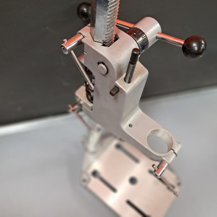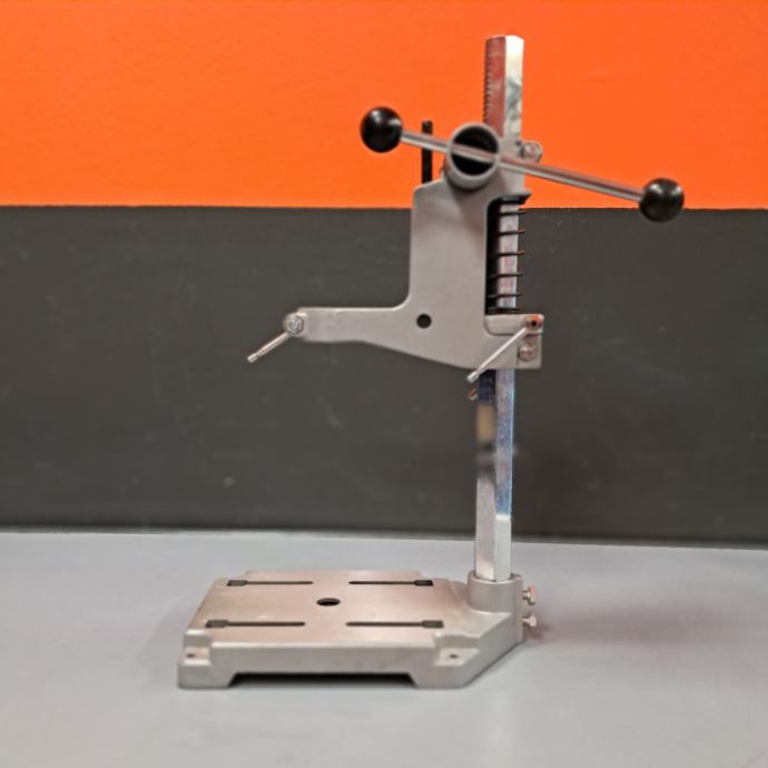 Na voljo je vrhunsko stojalo za vrtalni stroj MEROX, ki je v zelo dobrem stanju in skoraj kot novo! To vrtalno stojalo s premerom Ø 43 mm je idealno za natančno vrtanje površin, okroglih materialov in trakov, kar ga dela nepogrešljivim orodjem v vsaki delavnici. Zasnovano je z izjemno stabilnostjo, zahvaljujoč 40 mm okroglemu stebru in 340 mm dolgi priviti zobati letvi, kar preprečuje zvijanje med postopkom vrtanja.