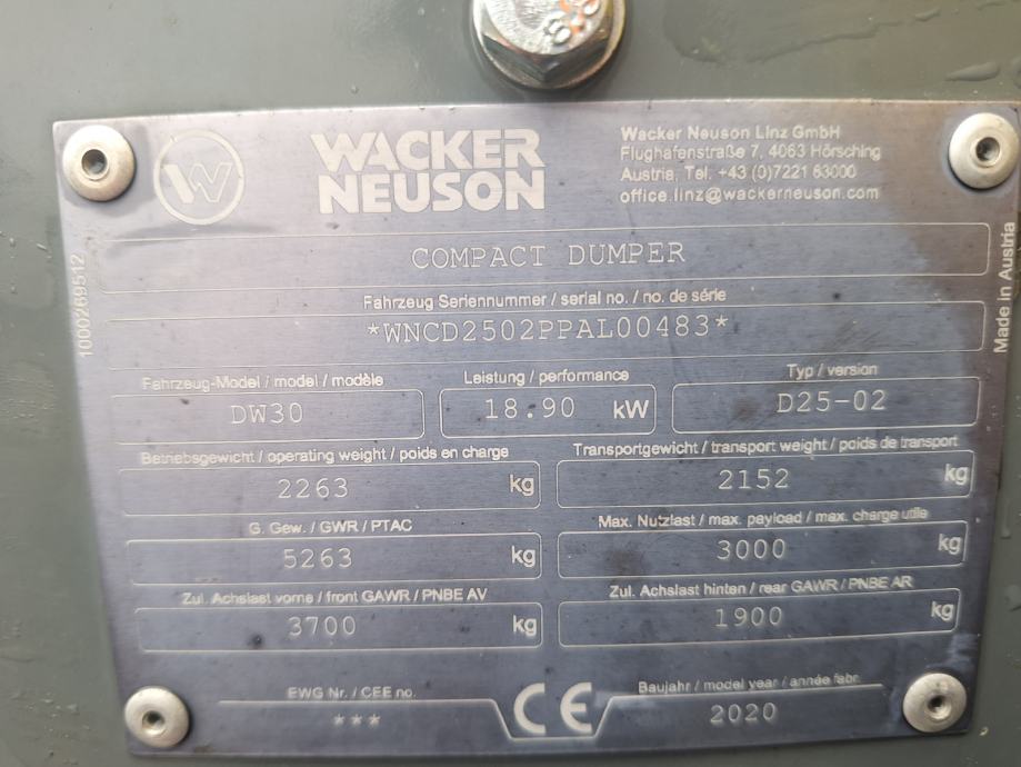 Prodam demper Wacker Neuson, nosilnost 3t, vrtljivi keson, hidro pogoni, delovne in signalne luči, demper kot nov.