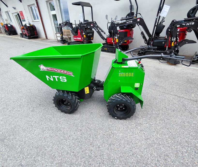 Električni mini dumper NTS XN500E je revolucionaren na področju gradbenih, vrtnarskih, kmetijskih,... del saj ponuja tiho in učinkovito rešitev z ničelnimi emisijami. Ključna prednost tega stroja je, da je primeren za delo v zaprtih prostorih, kot tudi v zunanjosti.