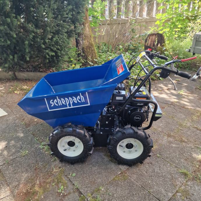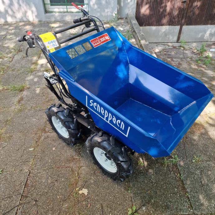 Prekucnik Scheppach Mini DP 3000 je idealen za prevoz ruše, zemlje, gramoza in kamenja. Je zanesljiv pomočnik na gradbišču, pri urejanju okolice in vrta, pa tudi v gozdarstvu in kmetijstvu. Velik zabojnik lahko sprejme razsute in težke materiale s težo do 300 kg. Prekucnik odlikuje dobra fleksibilnost in vodljivost. Z zrakom napolnjene pnevmatike za težke obremenitve in štirikolesni pogon zagotavljajo maksimalen oprijem tudi na zahtevnejših terenih, kot so spolzke in nestabilne površine. Smer gibanja se preprosto nastavi na ročaju, za optimalno delo pa so na voljo tri hitrosti.