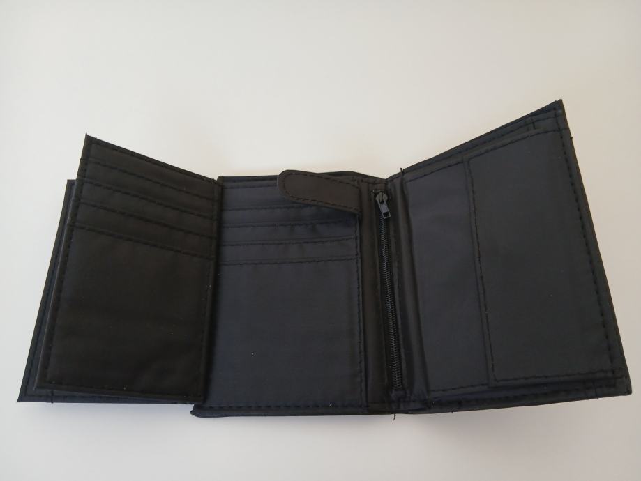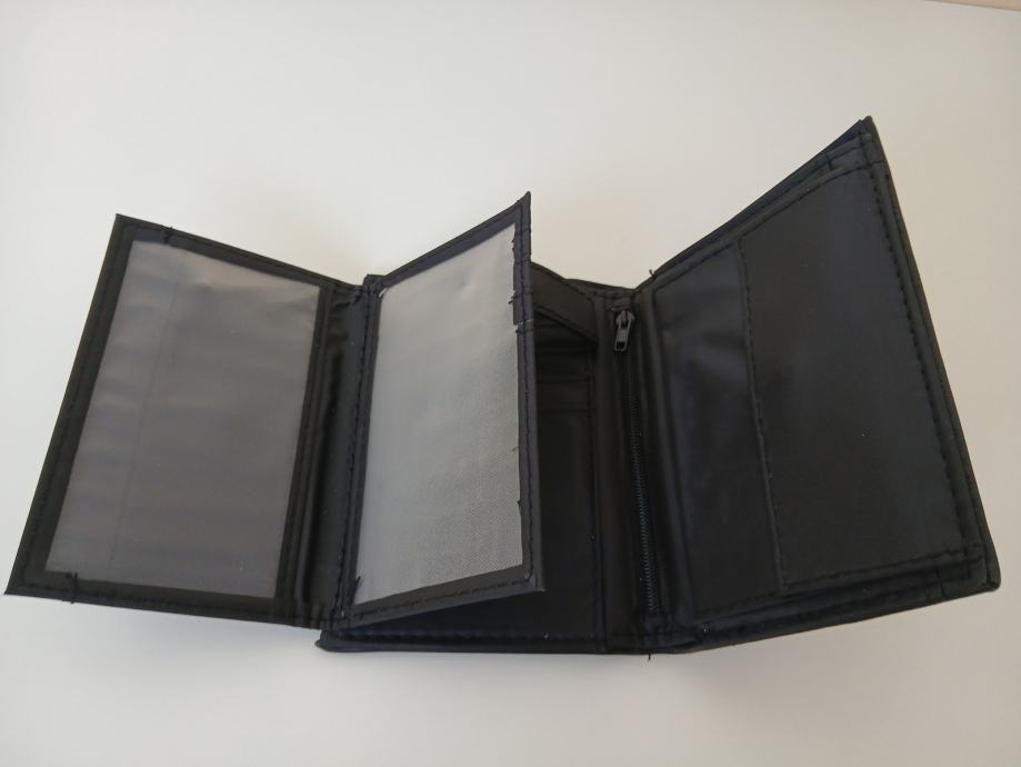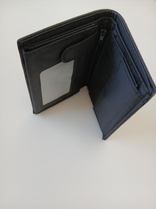 Ugodno prodam novo črno moško denarnico iz umetnega usnja, zelo kvaliterne izdelave, zelo primerna tudi za darilo. Ima predal za kovance in predalčke za kartice. Je zelo praktična, ni velika in se zlahka pospravi v hlačni žep.