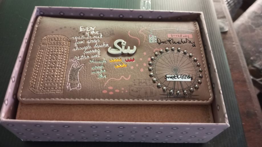 Nova v darilni škatli z motivom mačke in Broadwaya. Velikostv14x10 cm, umetno usnje, veliko predalov za plačilne kartice in del za drobiž.