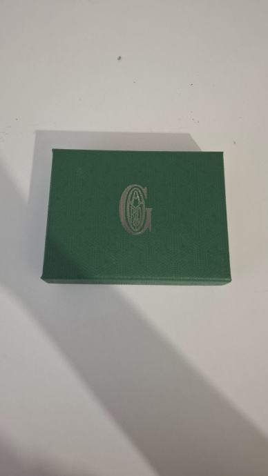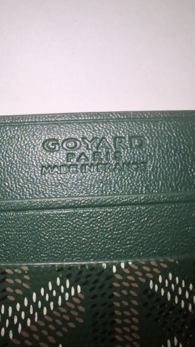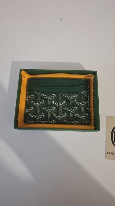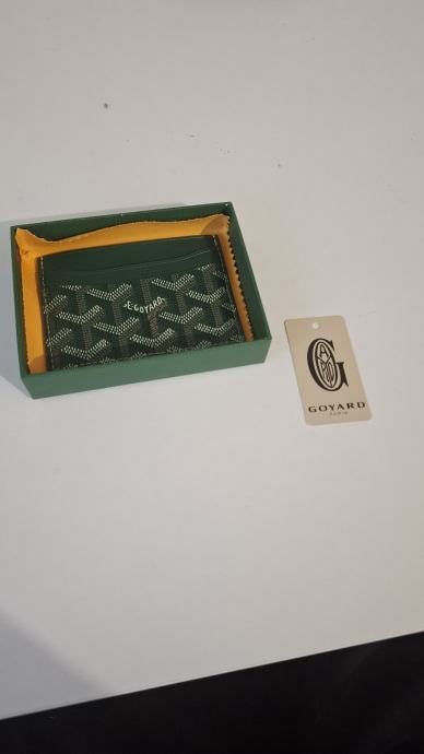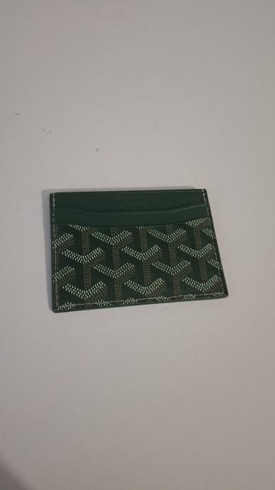 Prodajam rabljen Goyard cardholder za kartice v elegantni zeleni barvi z značilnim vzorcem. Cardholder je rahlo uporabljen, a še vedno v dobrem stanju z avtentično Goyard etiketo. Idealen dodatek za organizirano shranjevanje kreditnih kartic in gotovine.