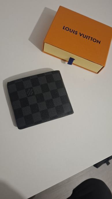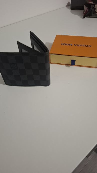 Prodajam novo Louis Vuitton denarnico z značilnim karirastim vzorcem, ki prihaja v originalni oranžni škatlici. Denarnica je elegantna, praktična in popolnoma nerabljena, primerna za vsakodnevno uporabo ali kot prestižno darilo.