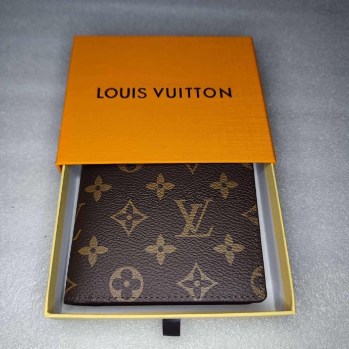 Prodajam novo moško denarnico Louis Vuitton s prepoznavnim monogram vzorcem. Denarnica je elegantna, praktična in še nikoli uporabljena, priložena je originalna embalaža.