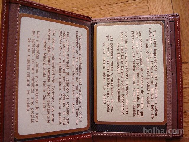 Elegantna denarnica in iz pravega usnja, rjave barve, v darilni embalaži.