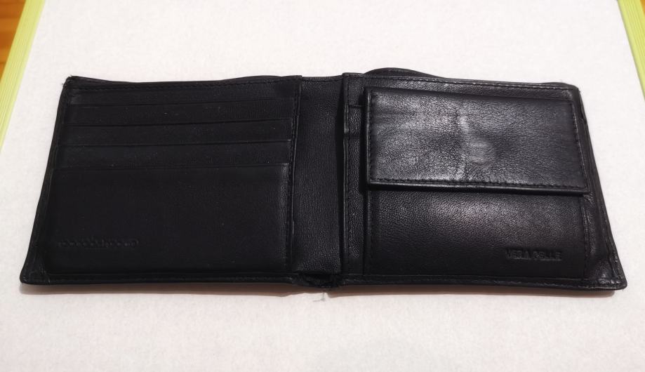 Prodam malo rabljeno denarnico Rocco Barocco. Denarnica je sestavljena iz pravega usnja in vsebuje dva prostora za bankovce, prostor za kovance ter 4 žepke za različne kartice ali izkaznice, poleg tega ima še dva dodatna prostora pod prostorom za kovance in prostorom za kartice.