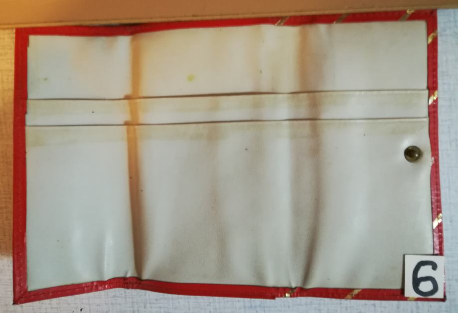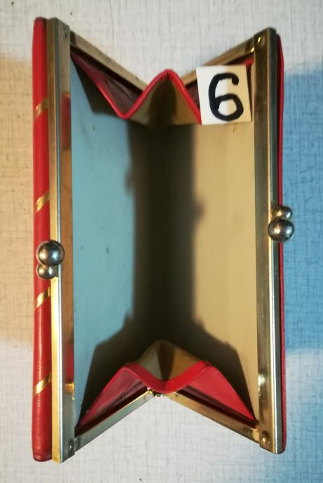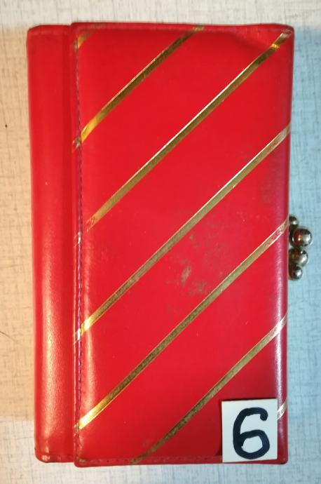 6. Stara ženska usnjena denarnica v rdeči barvi.