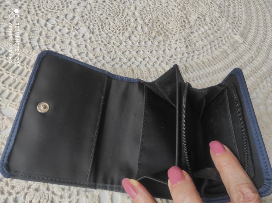 Ženska denarnica, platno, predal in drobižnica z zadrgo,