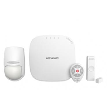Brezžični sistem HIKVISION omogoča enostavno namestitev brezžičnega alarmnega sistema v vaš dom ali vikend. Enostavno rokovanje je primerno povsem za vsakega uporabnika. Podpira dograditev do 32 brezžičnih senzorjev, omogoča dodajanje do 8 brezžičnih daljincev. Priložen je brezžični senzor gibanja z dosegom odkrivanja do 10m ter imunost pred domačimi živali do 24kg, litionska baterija omogoča dolgo življenjsko dobo do kar 2 let brez menjave baterije, priložen je tudi nosilec za senzor da boste lahko detektor namontirali na strop ali steno. Brezžični magnetni detektor omogoča da zavarujete vrata, okna, garažna vrata. Alarmna centrala ima vgrajen GSM komunikator kateri vas v primeru sprožitve alarma pokliče in pošlje SMS, omogoča pa tudi povezavo na aplikacijo preko pametnega telefona.