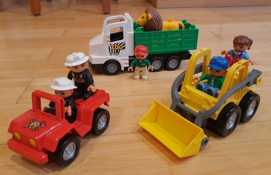 3-delni set DUPLO kock: ZOO tovornjak, bager, gasilsko vozilo CENA = 30 €