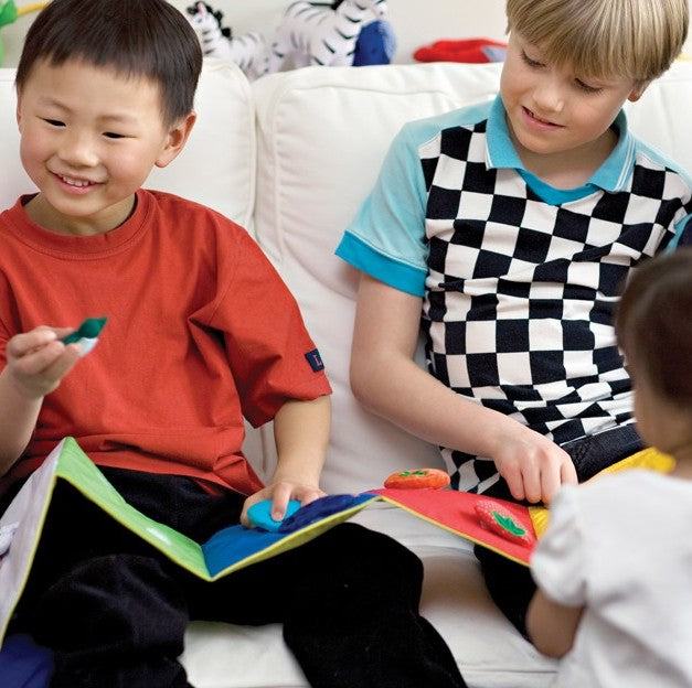 Aktivnostna mehka knjigica je kot nalašč za pomoč otrokom pri učenju novih besed, barv in pomagajo razvijati otrokove fine motorične sposobnosti, izboljšati koordinacijo oko-roka ter spretnost rok, hkrati pa spodbujajo ustvarjalnost.