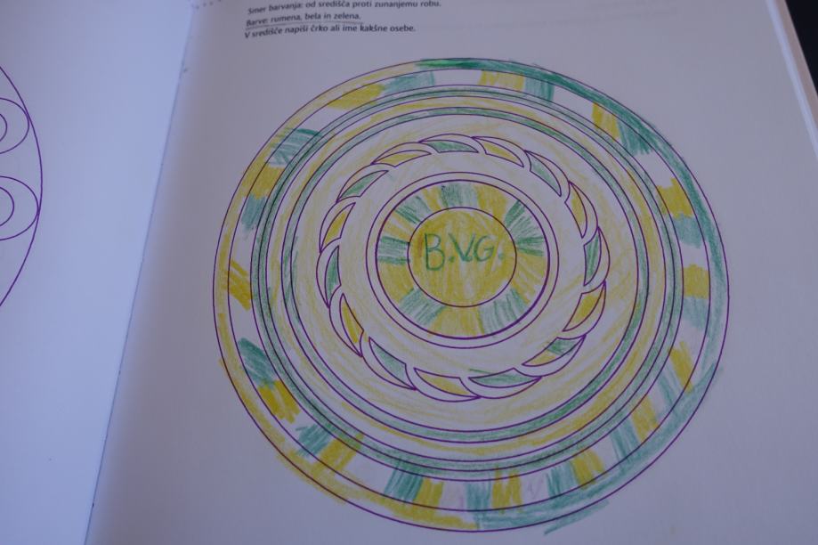 Knjiga je brezhibna, samo ena mandala je že pobarvana.