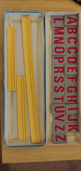 Prodajam zelo star komplet črk za učenje in za sestavlje besed. Komplet je bil za tisti čas zelo drag in teh črk dosedaj nisem opazil nikjer.