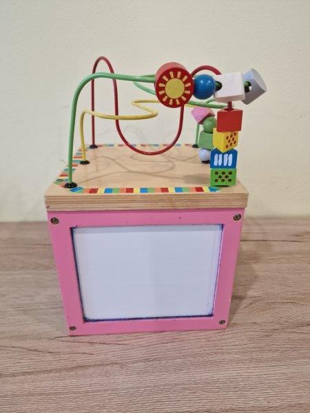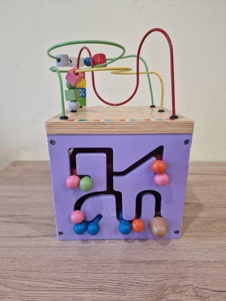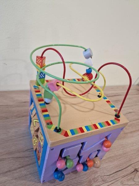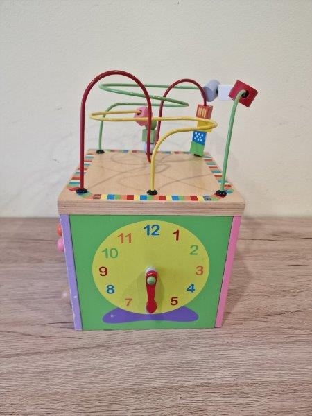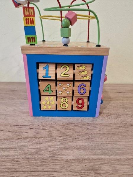 Didaktična kocka / igra za malčke. Lepo ohranjena, majhen delček se je odkrušil kot je razvidno na sliki.