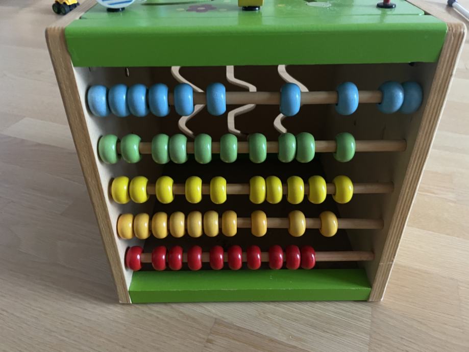 Prodamo leseno didakticno kocko. Spodboja otroka k motoricnim aktivnostim in hkrati vzpodbuja zaradi velikosti, da otrok cimprej vstane. Nudi dovolj opore, da otrok stoji in se igra, kljub temu da otrok ne zna stati brez opore.