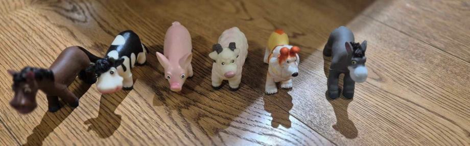 Podam komplet domačih živali na kmetiji. Živali so mehke in lepo ohranjene. (6 kosov)