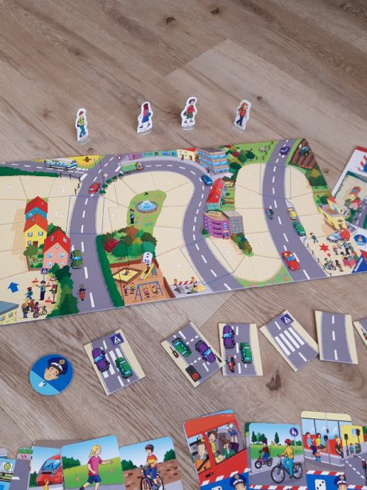 S to igro boste otroka naučili varnega ravnanja ob različnih situacijah v prometu. Igra je zabavna za vso družino. Zelo lepo ohranjena. Primerna tudi kot darilo.