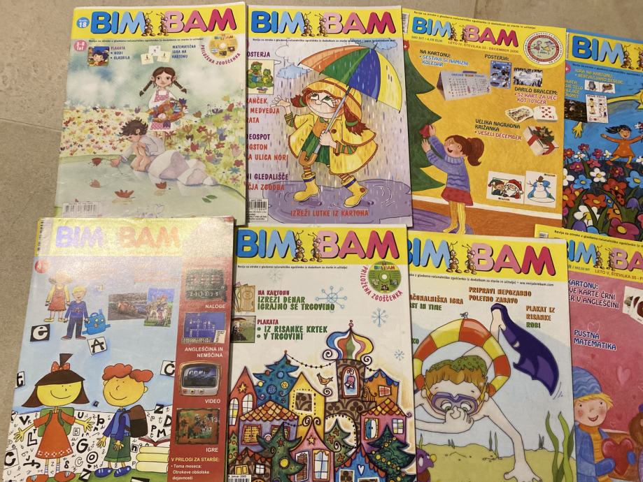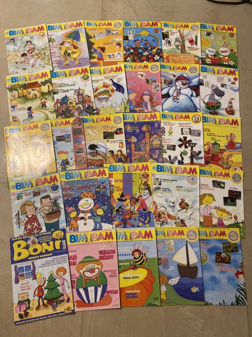 Prodam izredno lepe, bogate, fantastične legendarne revije BIM BAM za kvalitetno popestritev trenutkov z Vašimi radovedneži :) Z igro do znanja predšolskim otrokom ponuja obilo branja skupaj s starši, krepi vezi med otrokom in odraslim, šolarjem širi obzorja in budi radovednost. Skratka prava revija za vse navihane, radovedne, vedoželjne otroke! V njej boste našli številne pravljice, pesmice, uganke in dopolnjevanke, ustvarjalne in kreativne nasvete, igrice, obleci lutke, spomin, puzzle, križanke, labirinte, rebuse, opise živali in rastlin, poučne teme o običajih, poklicih, svetu, tujih jezikih, raziskovalne kotičke ter mnoge naloge, ki bodo otroke pripravile na šolo...