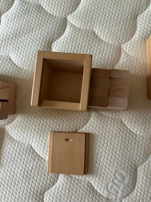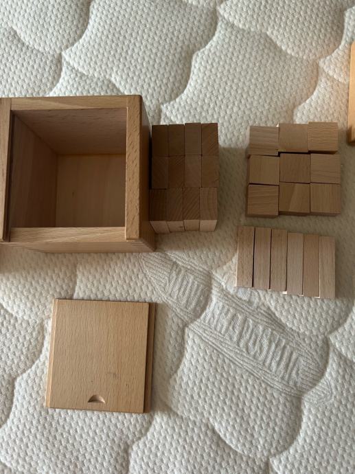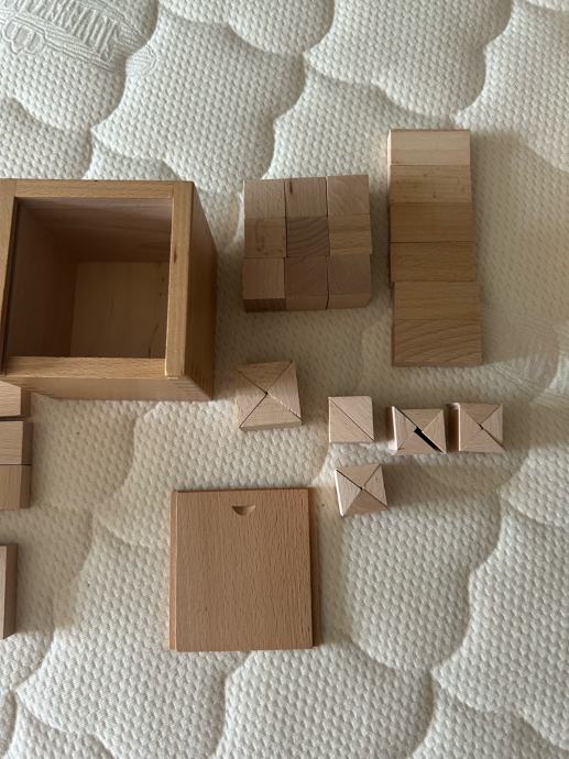 Prodam originalne Froebelove didaktične lesene igrače, to so izjemno poučne igrače Fröbel (nemško Froebelgaben), izdelane v Nemčiji iz bukovega lesa s strani spretnih obrtnikov po tradicionalnih metodah, ki se prenašajo iz roda v rod že več kot 150 let. Natančnost teh gradbenih blokov iz bukovega lesa je prejela mednarodno pohvalo arhitektov. Prvi gradniki, ki jih je zasnoval Friedrich Froebel, so niz osmih kock, znanih kot tretje darilo. Osem kock četrtega darila je dvakrat daljših in polovico širših, da se razširi ustvarjalna igra in aktivno učenje. Za še več zabave združite šestnajst kock tretjega in četrtega in petega darila.