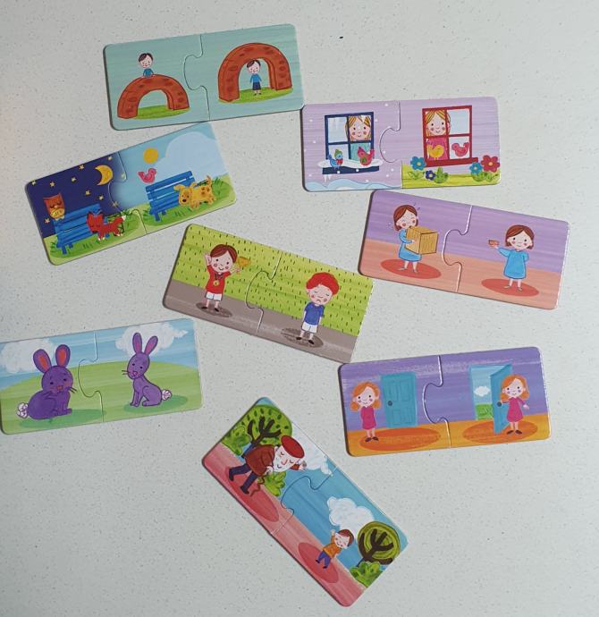 Otrok opazuje različne teme in ugotovi kaj spada skupaj, ker je podobno, vendar ravno nasprotno. 16 parov.