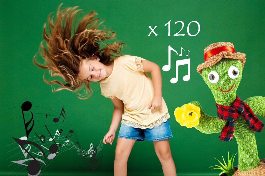 Samo dotaknite kaktusa ali se premikajte pred njim, in priča boste neverjetnemu plesnemu spektaklu. Kaktus se bo premikal v ritmu glasbe, zavrtel se bo, dvignil roke in zaplesal v svojem edinstvenem stilu. Poleg tega bo kaktus tudi zapel več kot 120 pesmi, vključno z otroškimi pesmicami, priljubljenimi melodijami in še več.