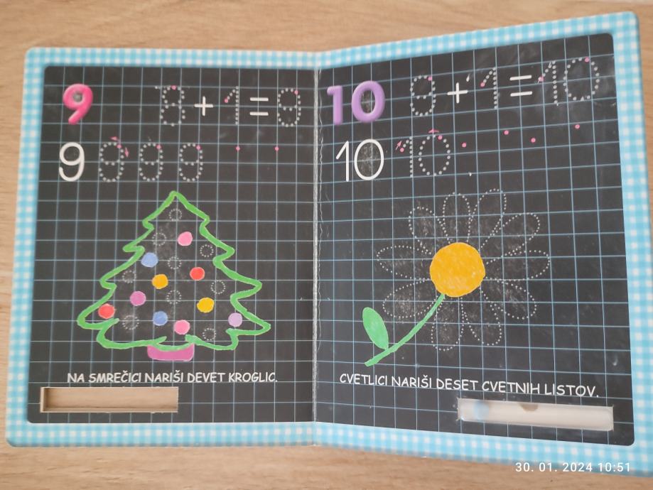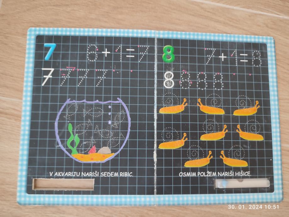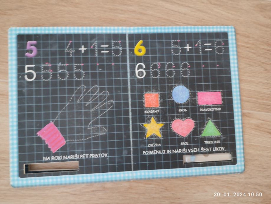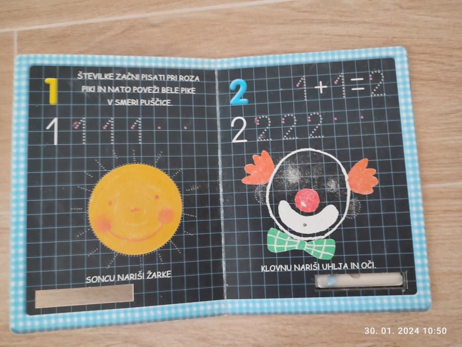 Z kredo se uči pisati stevilke in jih lahko pobriše.