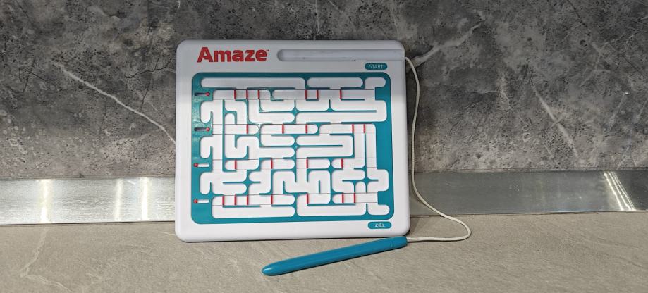 Več o didaktični igri: igralci se morajo po tej igri labirinta pomikati s priloženim pisalom, potiskati premične prehode in se izogibati pastem in slepim ulicam. Inovativen preobrat v klasični igri labirinta ter spremenljive poti premikanja spremenijo pot rešitve med igro. Premične ovire ustvarjajo slepe ulice in neskončne zanke. S 16 edinstvenimi izzivi in brez koščkov, ki bi jih lahko izgubili, je Spreminjajoči labirint Amaze idealna potovalna igra.