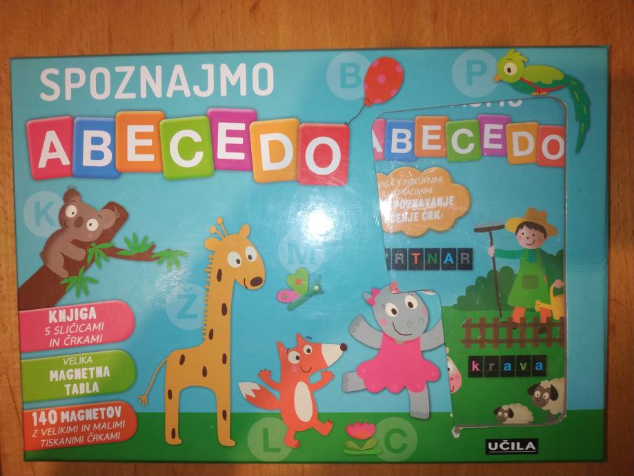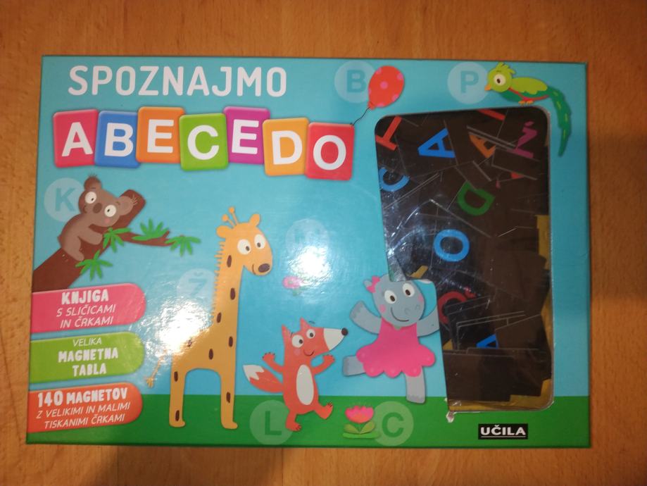 Prodam novo magnetno tablo za učenje črk in branja. Komplet vsebuje tablo, kartice z valikimi in malimi tiskanimi črkami (140 kos.) ter knjižico s slikicami in besedami za učenje. Za nakup ali več info. me kontaktirajte na simpa.simpa11@gmail.com