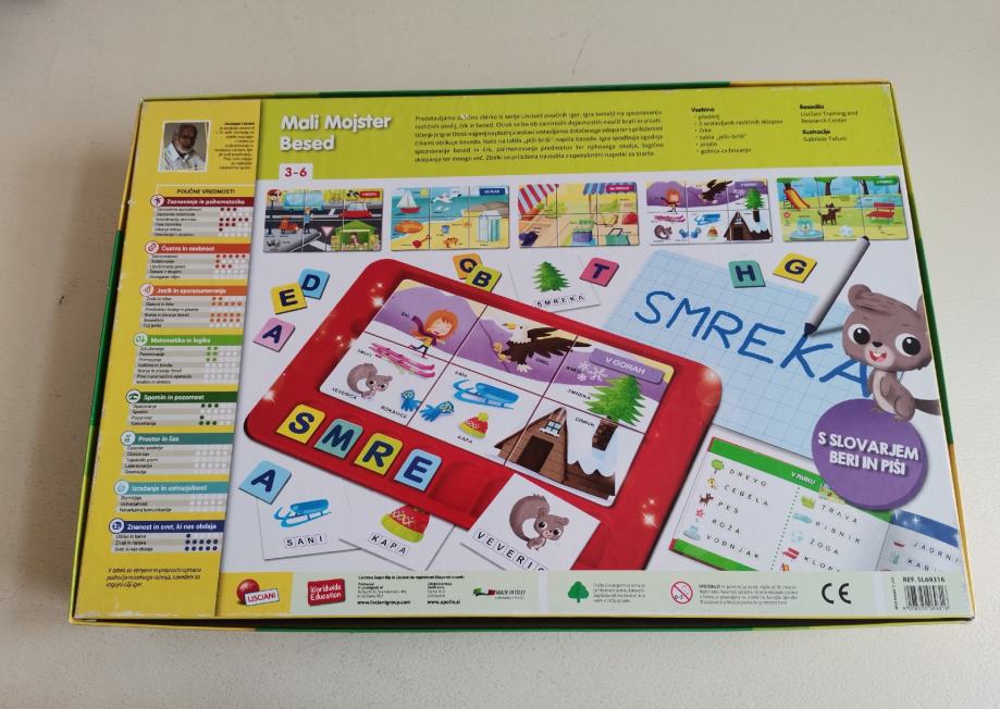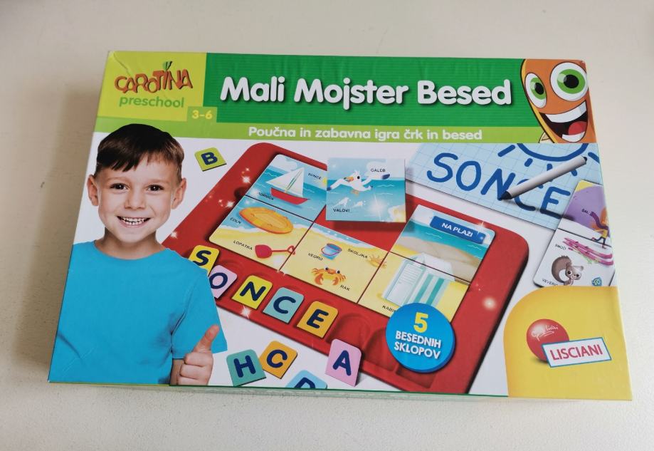 Družabna igra mali mojster besed, za starost 3-6 let. Cena 8€. Pošljem tudi po pošti.