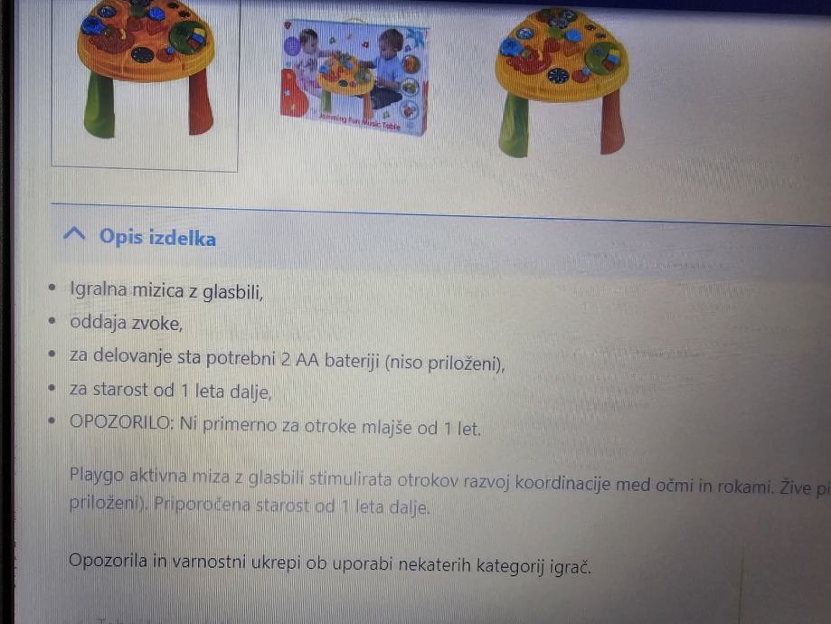 Prodam igralno mizico z glasbili. Je kot nova, vsa glasbila delujejo. Kupljena je bila v Baby Centru.