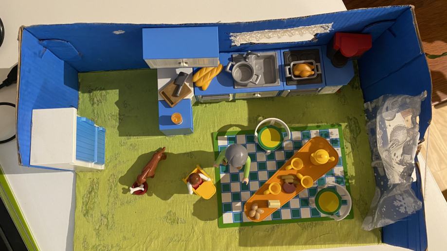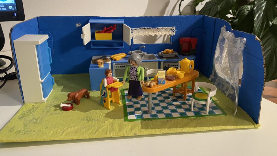 Komplet vsebuje kuhinjske elemente ter posodo.