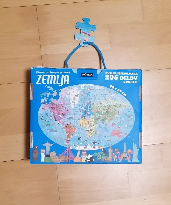 Ovalna sestavljanka Zemljevid sveta, velikosti 98x67cm s prilozeno knjigico.