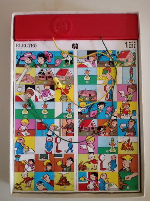 Prodam igračo iz začetka sedemdesetih let, kjer otrok išče povezavo med dvema sorodnima slikama. Ko najde pravo, zasveti lučka. Tel.: 031 396 863