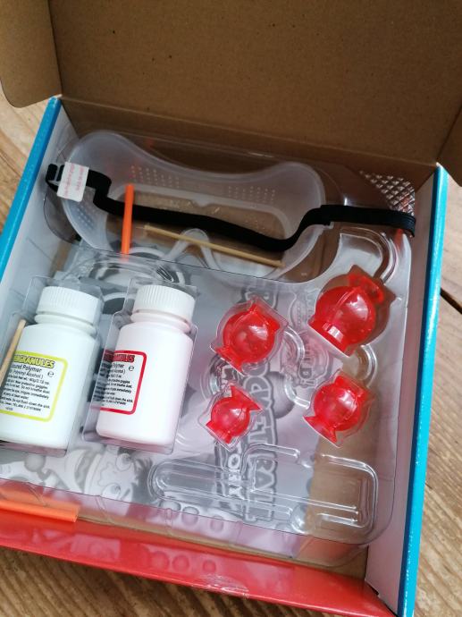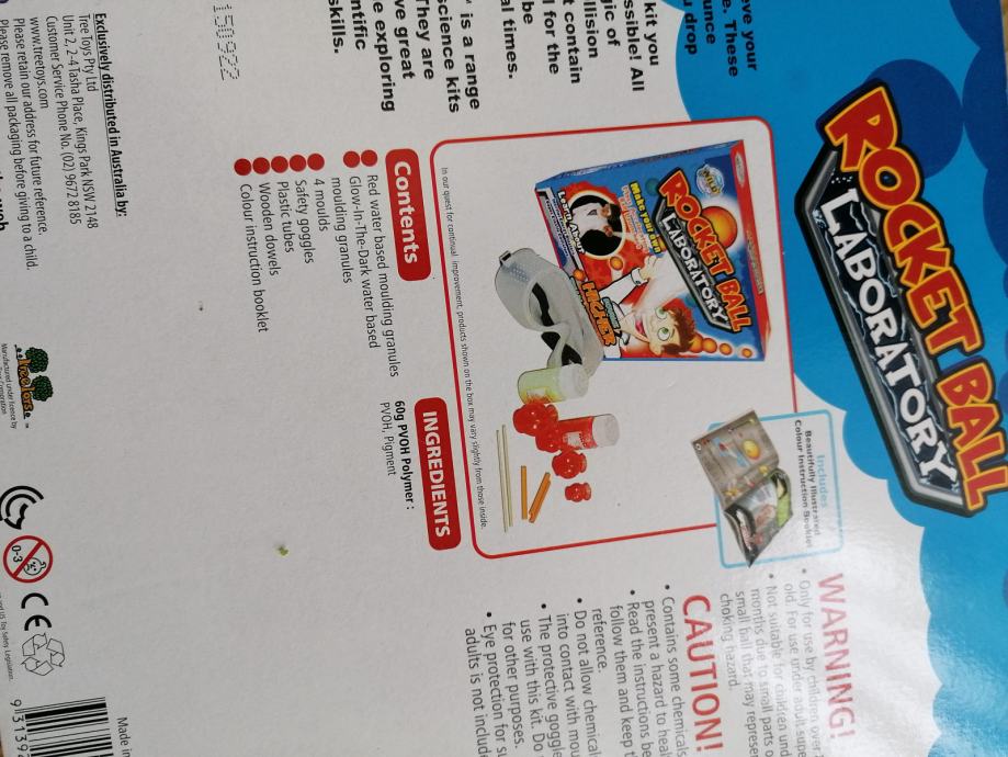 Prodam nikoli rabljeno igro Rocket ball laboratory, ki spodbuja otroka v ustvarjanju, k natančnosti in pomaga otroku razumeti fizikalne zakonitosti. S pomočjo navodil si otrok ob nadzoru odraslega ustvari krogle, ki se odbijajo in svojo hitrost dodatno pospešijo ob udarcu. Precej zanimiva zadeva, vendar mi ob vseh kockah, maketah in drugih igračah nikakor ne najdemo časa, da bi se tega lotili in nam škatla žalostno sameva na polici. Škatlo smo zgolj odprli (ni bila v plastičnem ovitku), vse v njej je nerabljeno, zato sem označila kot novo.