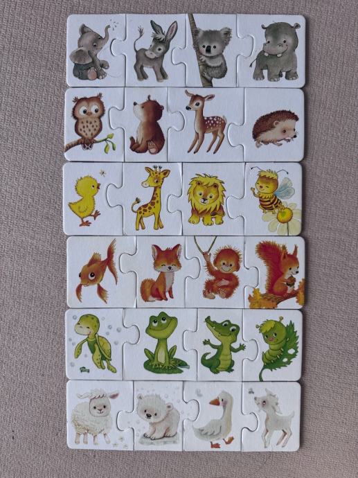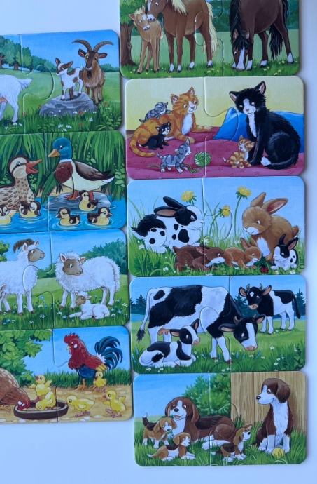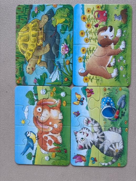 Prodam komplet petih različnih lepo ohranjenih sestavljank. 1× Djeco “Puzzle Duo – Funny Eggs” (6 mini puzzles)- kot nov