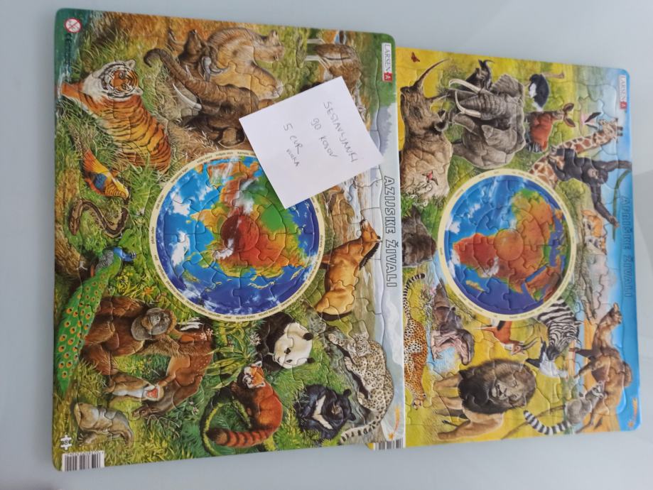 Prodam dve poučni sestavljanki, vsaka 90 kosov- AZIJSKE in AFRIŠKE živali