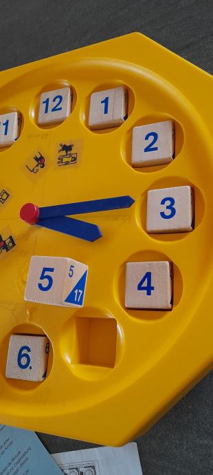 Otroski komplet za lazje ucenje, ura je na baterijo, stevilcnice so na lesenih kockah, mozno je uro obesiti na steno
