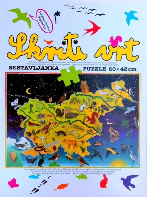 SKRITI VRT, je sestavljanka-puzzle velikosti 60cm x 42cm in je sestavljena iz 266 delov.
