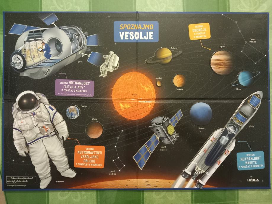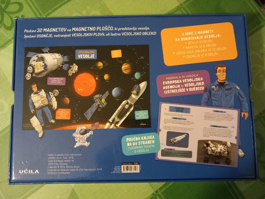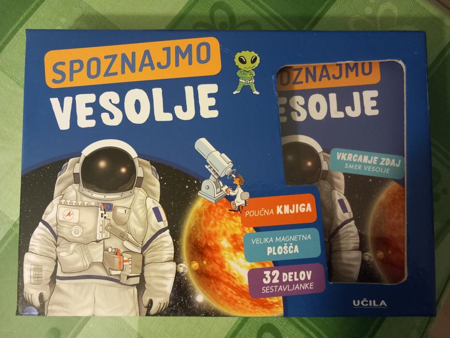 Prodam zelo lepo ohranjeno, kot novo - igro s sestavljanjem slikic na magnetni plošči in knjigo o VESOLJU. Vsebuje vse kar je napisano na škatli in nič ne manjka.