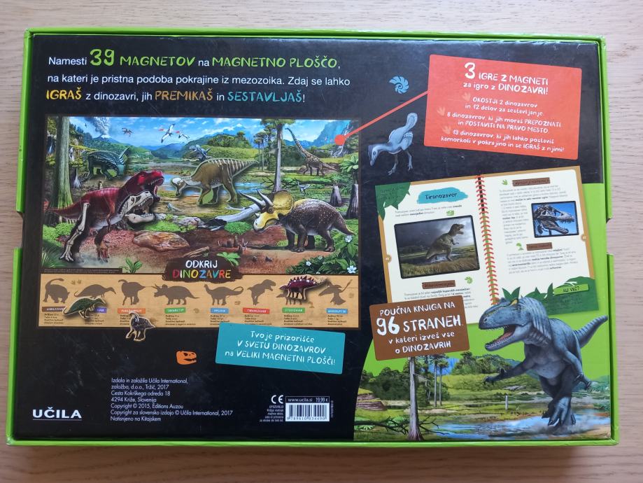 Prodam tudi lep komplet didaktično igračo o DINOZAVRIH ( kniga, magneti in magnetna tabla) Vsebuje vse kar je napisano na škatli in nič ne manjka.