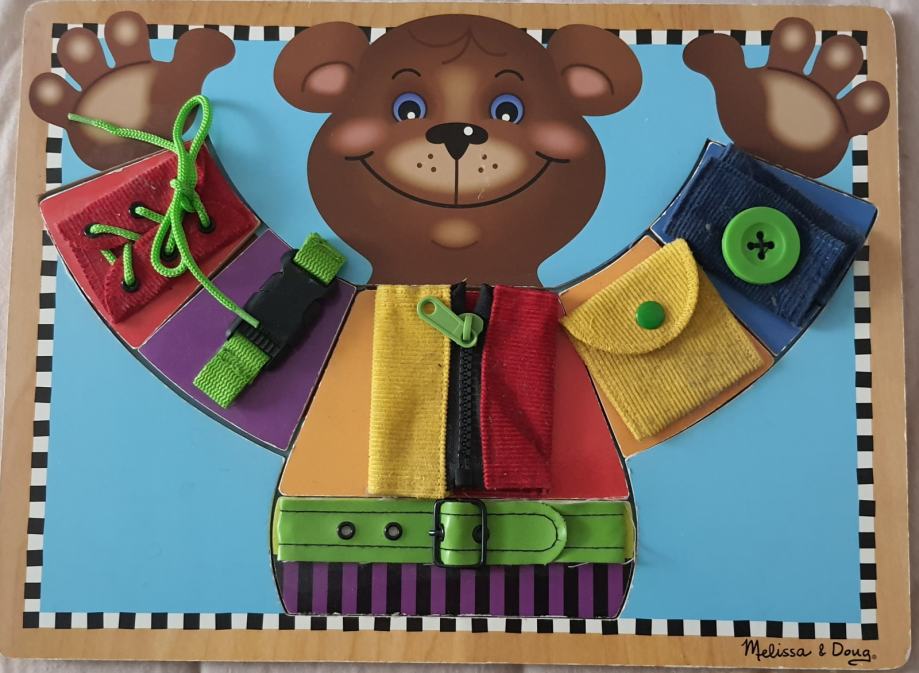 Spretnostna tabla zapenjaje zadrge, vezanje vezalk, gumb zapenjanje gumba...