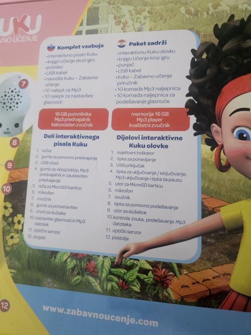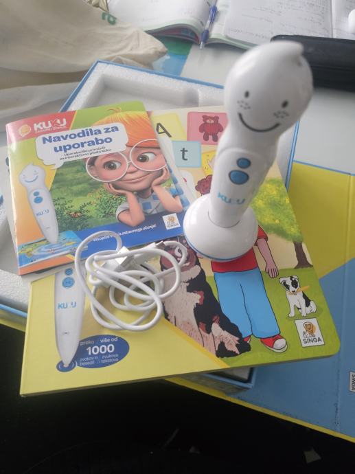V paketu dobite knjigo,interakrivno pisalo, usb kabel,navodila,nalepke. Primerno za otroke stare med 3-7 let.